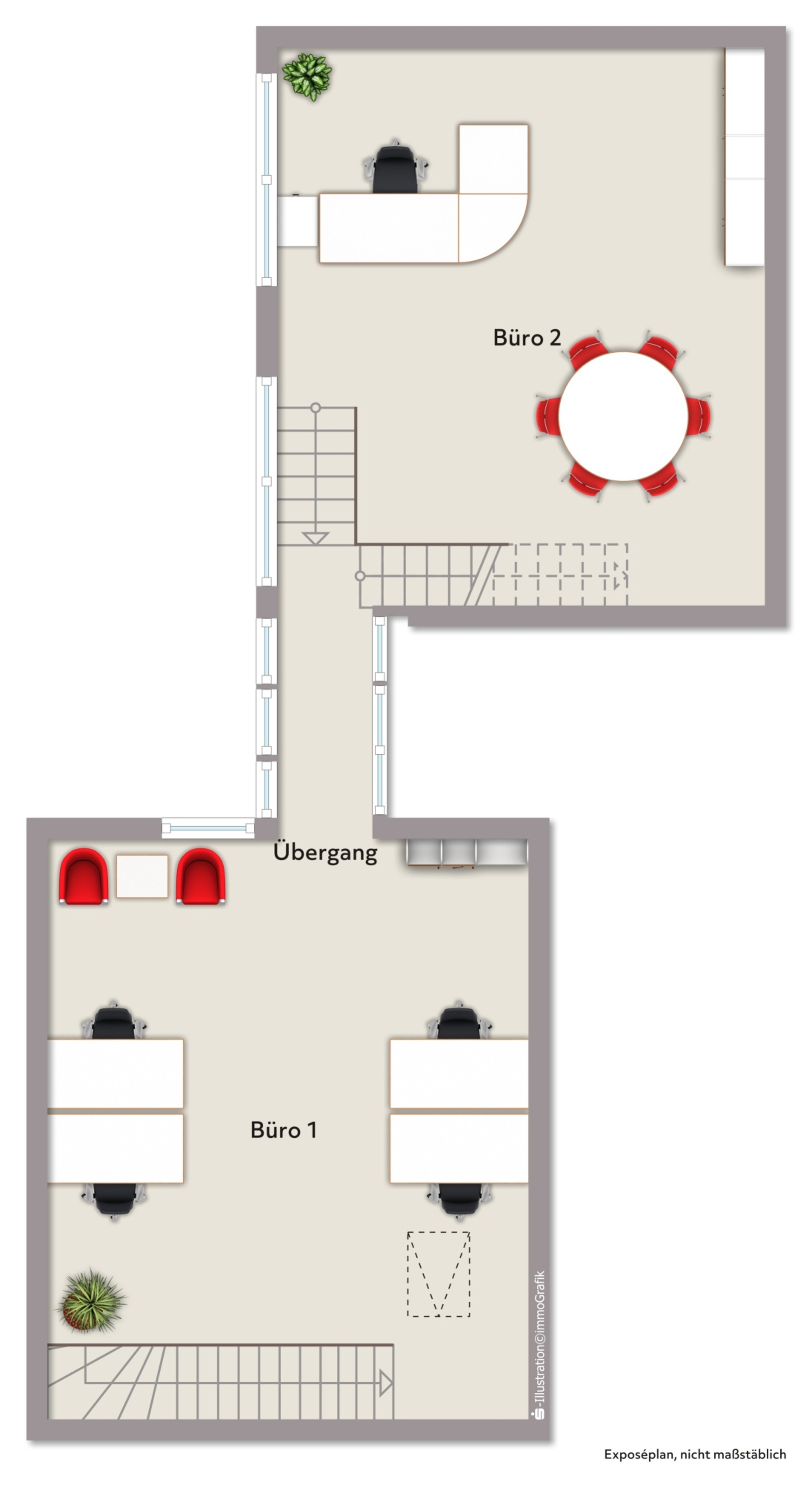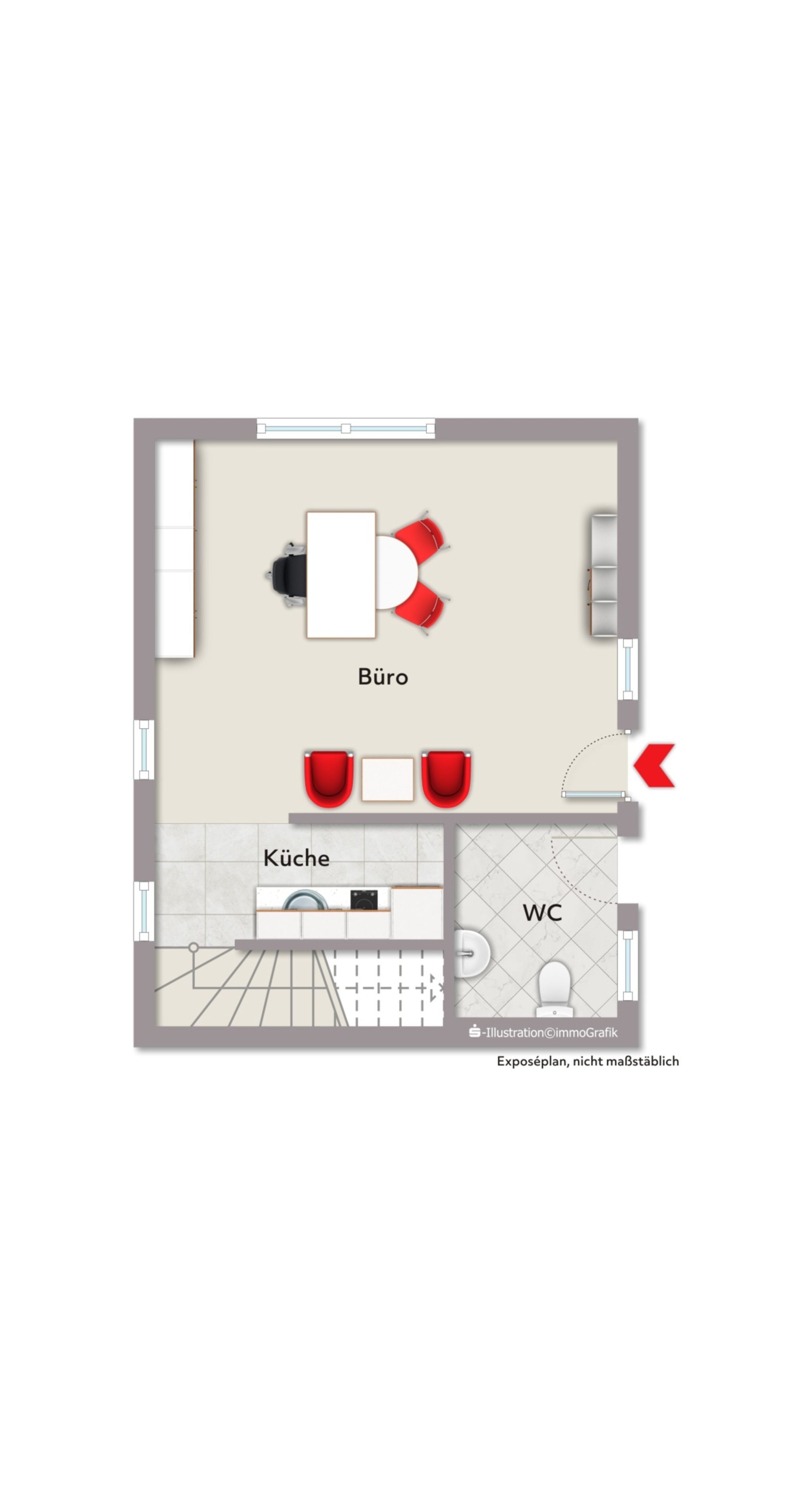 Ein echtes Highlight ist das dritte Gebäude, das in der Vergangenheit gewerblich genutzt wurde. Ob als Atelier, Praxis, Büro oder Studio - hier stehen Ihnen alle Möglichkeiten offen. Über einen modernen Glasdurchgang im Obergeschoss gelangen Sie direkt zur aufgestockten Garage, die mit zusätzlicher Bürofläche sowie einem praktischen Lager im Dachgeschoss punktet.